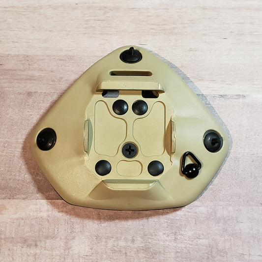 Helmet-mounted hardware to attach a night vision mount. Our shrouds are either new-old-stock or used/refurbished. Every shroud is individually cleaned, inspected, all moving parts are lubricated, and ensured to work perfectly with a variety of mounts and helmets. No airsoft/replica shit here, only real deal milspec items.